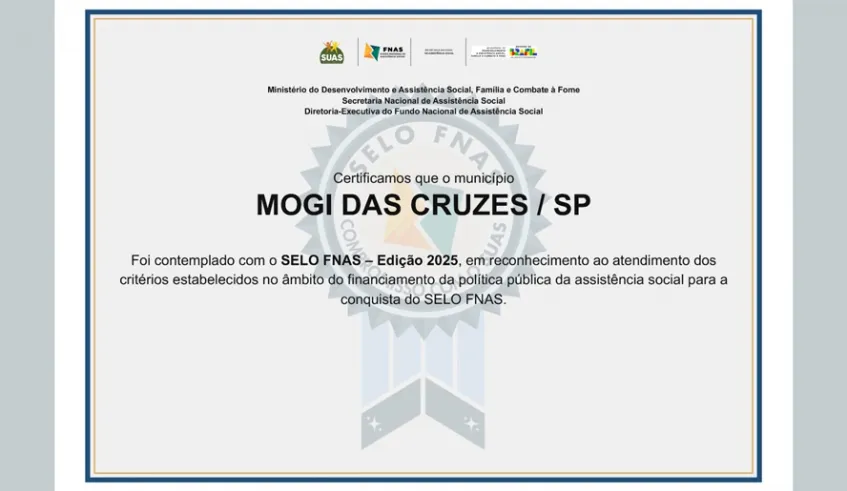 FNAS 2025 Mogi das Cruzes conquista Selo FNAS 2025 por excelência na Assistência Social